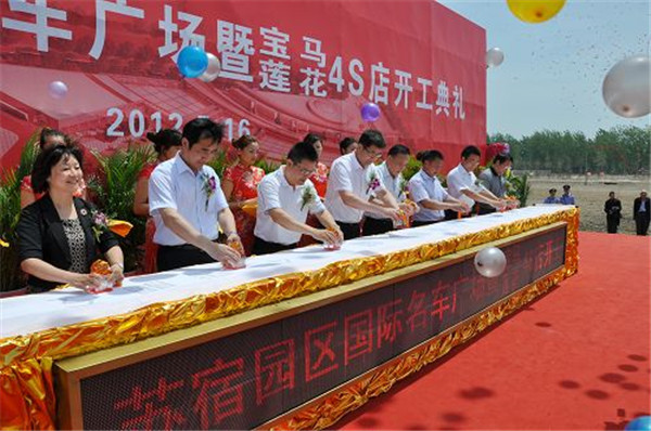 5月16日上午10時(shí)58分,蘇宿園區(qū)國(guó)際名車廣場(chǎng)暨寶馬、蓮花4S店開(kāi)工典禮在蘇宿工業(yè)園區(qū)隆重舉行。
