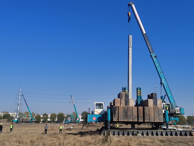項目位于青海湖西路與五指山路交叉口,樁基采用預(yù)制混凝土方樁,施工區(qū)域涉及商業(yè)、白領(lǐng)公寓、藍(lán)領(lǐng)公寓、人防區(qū)及非人防區(qū),共計2235根,總長度約4.7萬米,為加快工程進(jìn)展,現(xiàn)場布置四臺設(shè)備同步施工,確保2022年1月底完成施工。