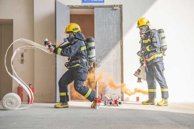 此次演練完全按照“真實模擬火場、現(xiàn)場領受任務、無預案戰(zhàn)斗展開”模式進行,災情假設為B10二層服裝加工企業(yè)起火,該企業(yè)立即啟動自救預案并撥打消防報警電話。園區(qū)消防應急救援大隊接警后,一次性調(diào)派2輛消防車11名消防戰(zhàn)斗員趕赴處置,演練過程中按照救人第一的指導思想,科學施救,內(nèi)攻滅火、內(nèi)攻搜救、外圍控火、緊急撤離等技戰(zhàn)術措施控制火勢,消滅火災。