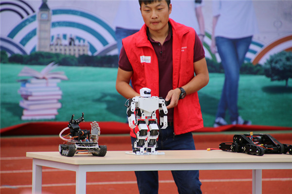 表演中,兩臺(tái)多軸飛機(jī)在場地作繞場及8字飛行,在飛行4分鐘后,隨著背景的高潮音樂響起,在空中打開了橫幅——“共創(chuàng)文明社區(qū),締造幸福家園。”隨后,無論是機(jī)器人的介紹演示、固定翼無人機(jī)的拉煙表演還是直升機(jī)表演,又或是像真機(jī)空中格斗飛行,都讓同學(xué)們?cè)诨?dòng)和操作中充分感受到了科技的飛速發(fā)展,拓展了視野,更對(duì)航空模型制作產(chǎn)生了濃厚的興趣。
